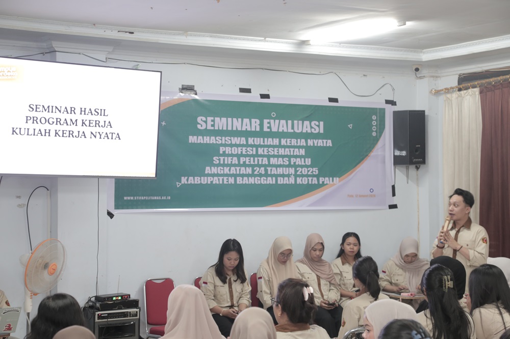 Pelaksanaan Kuliah Kerja Nyata (KKN) Profesi Kesehatan Sekolah Tinggi Ilmu Farmasi (STIFA) Pelita Mas Palu Angkatan XXIV Tahun 2025 dinilai berjalan baik dan memberikan dampak nyata bagi masyarakat di Kabupaten Banggai dan Kota Palu. Penilaian tersebut disampaikan dalam Seminar Evaluasi KKN sebagai bagian dari penilaian pelaksanaan kegiatan mahasiswa di lapangan.
